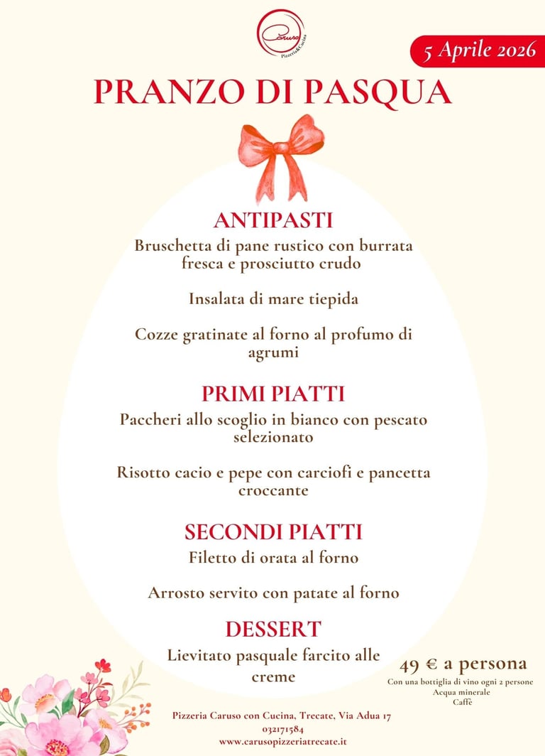 Festeggia la Pasqua con un menù dedicato, pensato per esaltare i sapori della tradizione con un tocco di creatività. Abbiamo selezionato ingredienti di stagione e preparato piatti che raccontano il piacere dello stare insieme a tavola. Scopri il nostro Menù di Pasqua e assicurati il tuo posto!