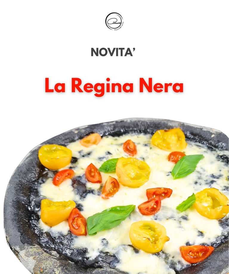 Un equilibrio perfetto tra ombra e luce, dove il nero intenso dell’impasto esalta la vivacità luminosa del condimento.