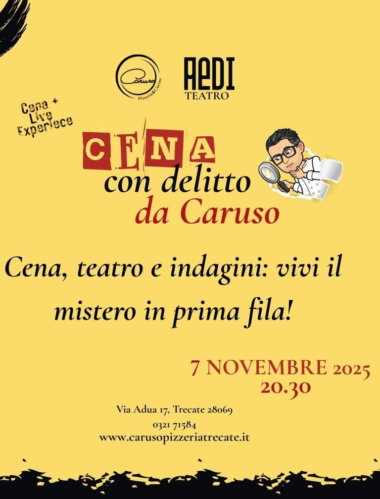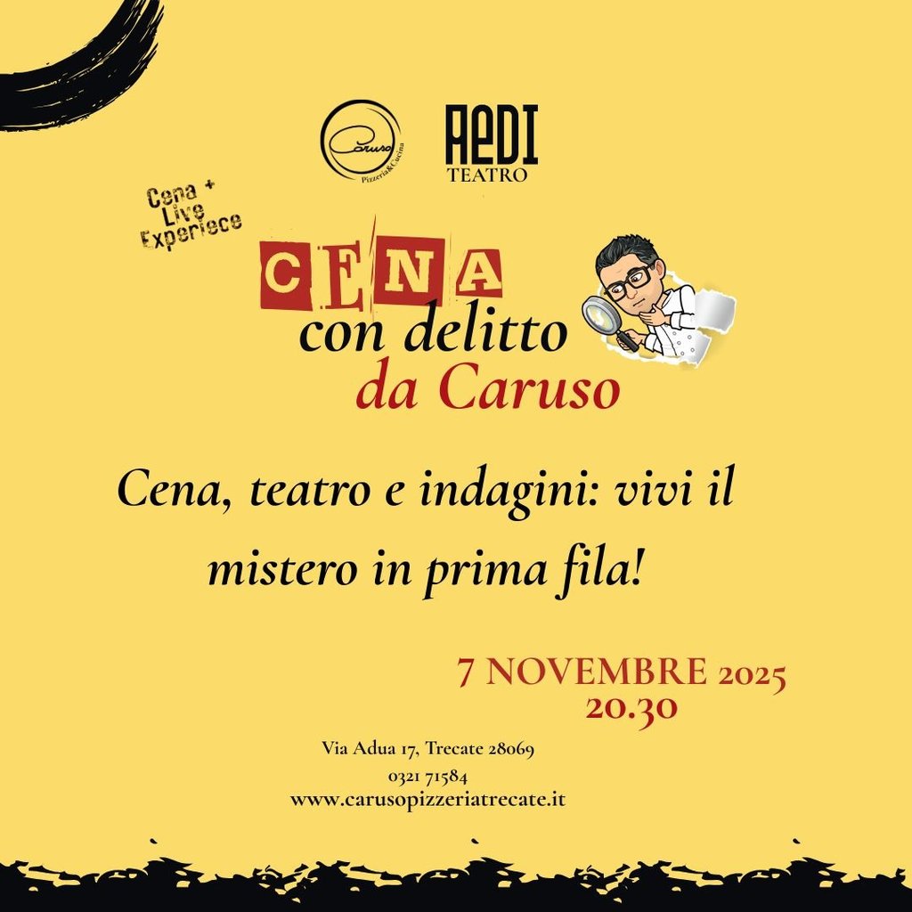 Un mistero sta per servire in tavola! In collaborazione con Aedi Teatro, una serata dove teatro, gusto e intrigo si fondono in un’unica esperienza. Durante la cena, un cast di attori professionisti interpreterà personaggi misteriosi e affascinanti: osserva, ascolta, e goditi la cena una portata ed un indizio alla volta… Chi riuscirà a risolvere il caso vincerà un premio speciale! 👀